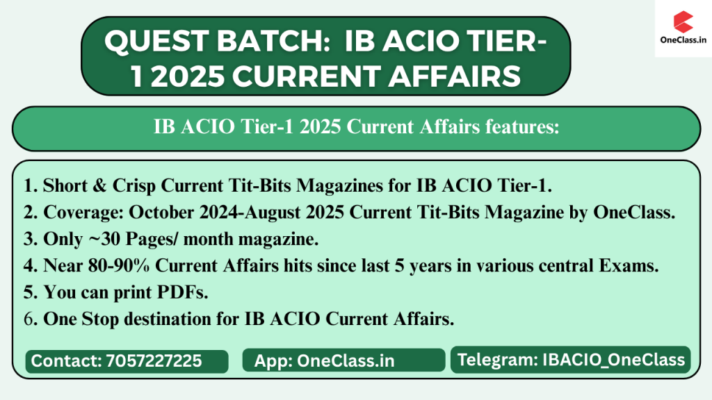 Quest Batch: Current Affairs for IB ACIO Tier-1 2025